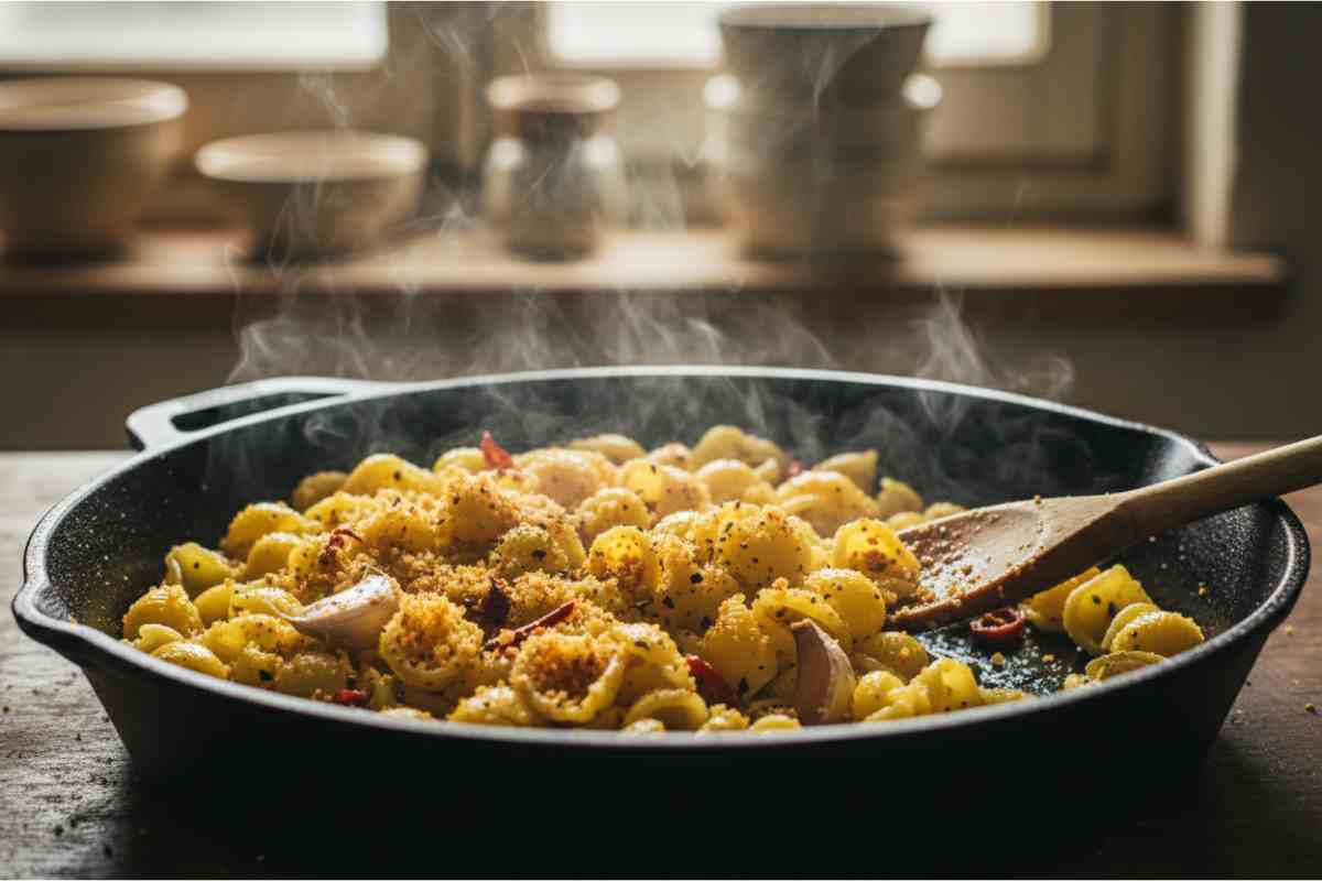 Trucchi e consigli: attenzione al momento esatto in cui aggiungere il pangrattato tostato. Se lo fai a fuoco acceso o troppo presto, il pane assorbe tutto e diventa mollo, invece deve “scrocchiare” sotto i denti.