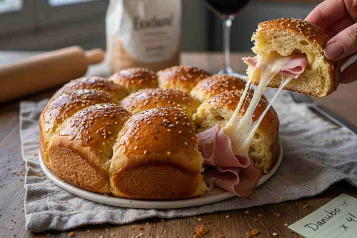 Trucchi e consigli: Quando lo sforni, lascia che il Danubio riposi per 10 minuti prima di portarlo a tavola. Se provi a staccare una pallina bollente, la pasta si schiaccia e perde la sofficità.