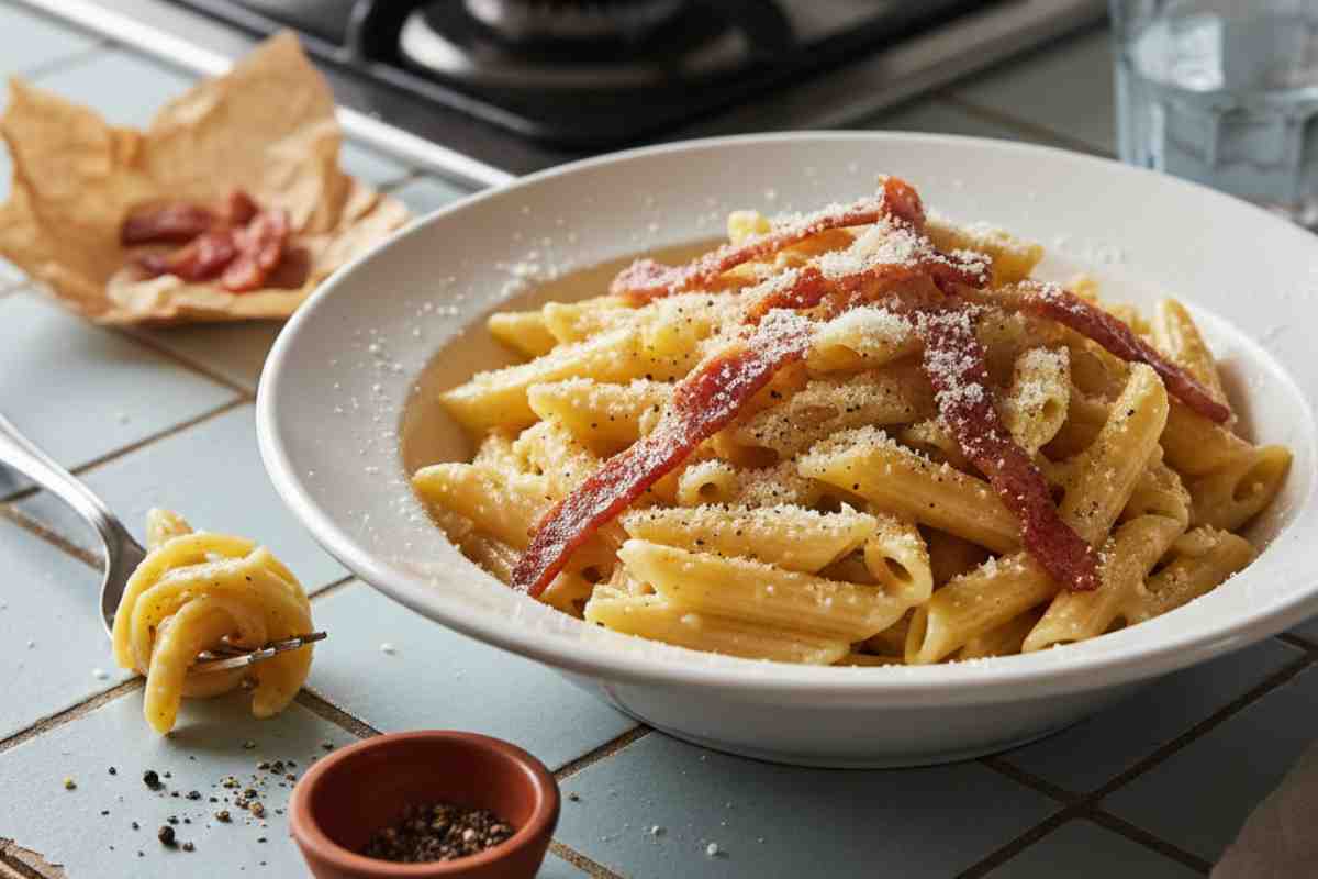 Cucinare la Pasta alla Gricia è una trovata incredibilmente conveniente perché la ricetta si basa su ingredienti poveri ma di carattere, che spesso abbiamo già in dispensa o che non pesano sul carrello della spesa. La magia sta tutta nel contrasto tra la sapidità croccante del guanciale e quella cremina di pecorino che avvolge la pasta come un abbraccio. Non serve panna, non servono grassi aggiunti, solo un po’ di acqua di cottura e il gioco è fatto in meno di un quarto d’ora.