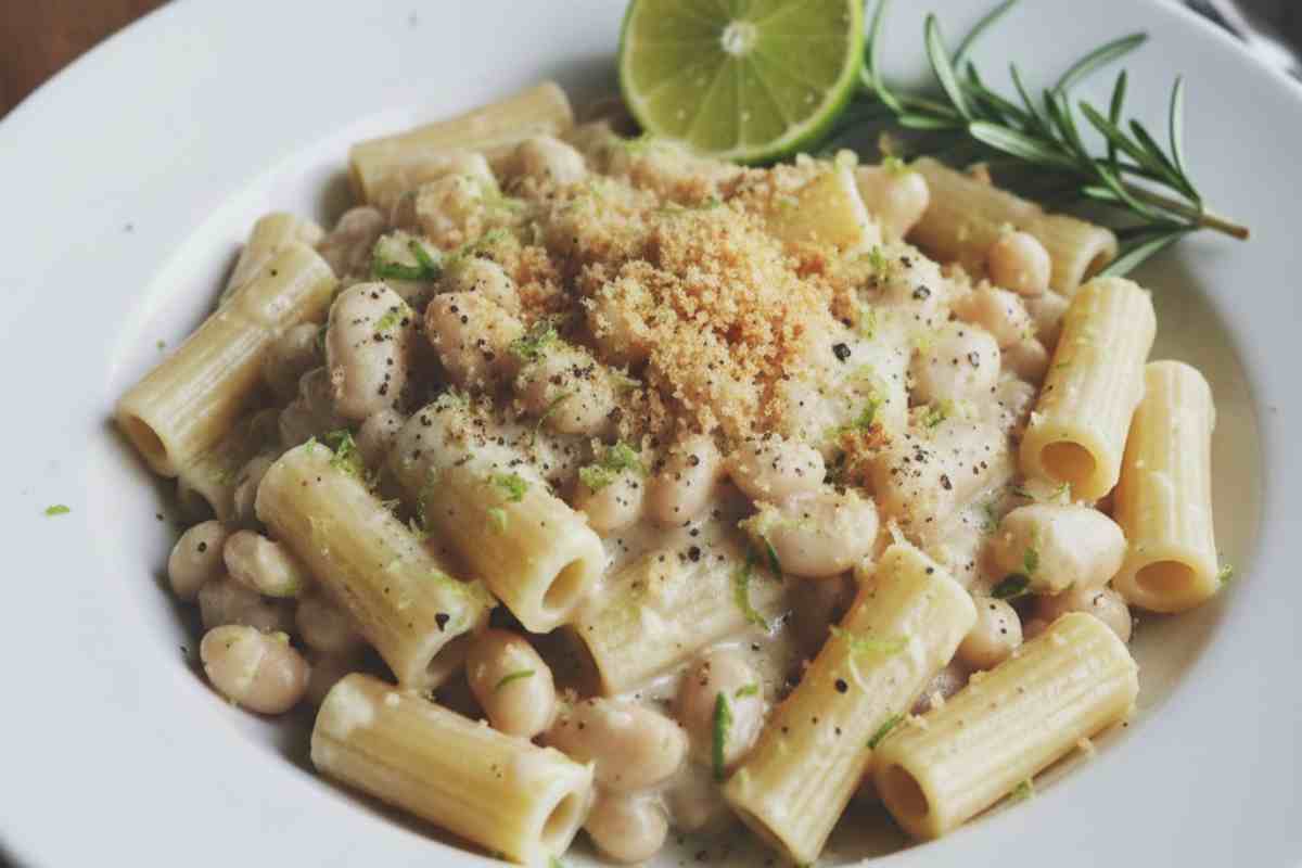 Ci vogliono della pasta corta, dei fagioli cannellini e poco altro. Cioè del lime, del rosmarino, aglio, pangrattato, sale, pepe nero ed olio extravergine d’oliva.