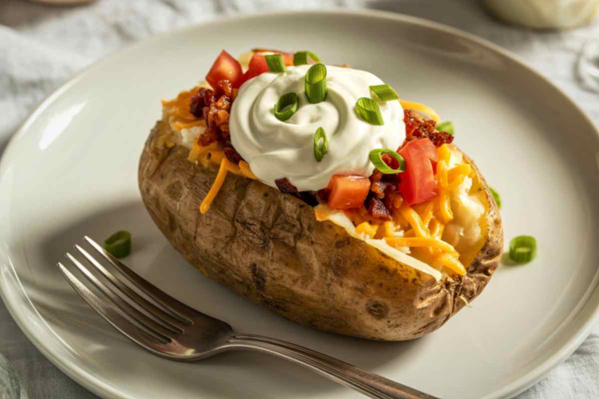 Procurati delle patate. panna acida, del Cheddar rosso, del bacon e dei pomodori ramati. Tutto questo andrà a costituire il corpo principale della pietanza. Il resto lo completi con dell’erba cipollina fresca, con burro salato, sale, pepe nero ed olio extravergine d’oliva.