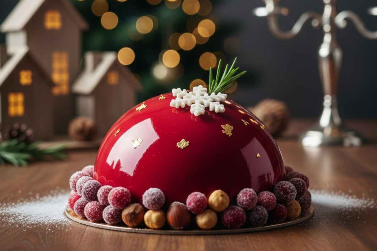 La ricetta della torta a cupola natalizia con glassa a specchio rossa