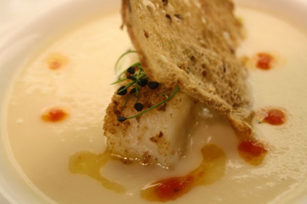 Vellutata di baccalà in un piatto