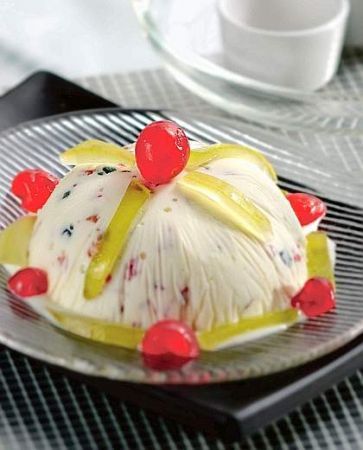 Versate il composto in un piatto da portata, preferibilmente a forma di cupola, oppure dategli voi una forma di cupola. Mettete in frigo il dolce e servitelo freddo.