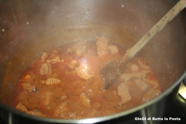 9. Cuocete il pörkölt a fuoco moderato per almeno un’ora, con il coperchio parzialmente scostato per permettere al vapore di uscire. ricetta goulash 10