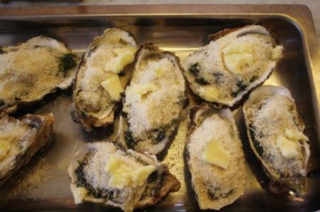 Ricoprite le ostriche con un miscuglio di parmigiano grattugiato e poco pangrattato, infine distribuite dei fiocchetti di burro sopra.