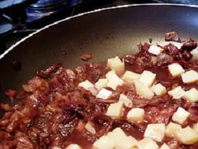 - In un tegame mettere a rosolare uno spicchio di aglio con poco olio.