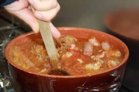 Di fatto si tratta di un sugo che ricorda in tutto e per tutto il ragù di carne solo che invece del macinato si usa la salsiccia sbriciolata, tolta dal suo budello e rosolata con un trito di verdure, sfumata con il vino e insaporita con erbe aromatiche e spezie per avere un condimento super saporito.