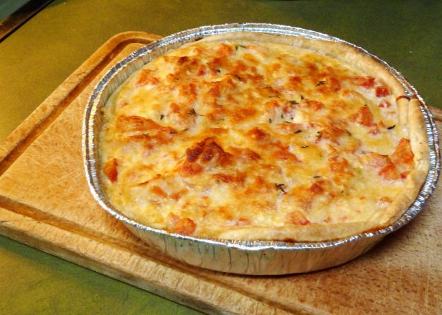 Cuocete la torta salata ai frutti di mare per circa 25 minuti nel forno caldo a 200 gradi.