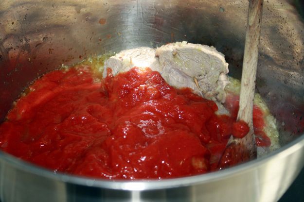 - Tagliate a pezzetti le pesche sciroppate marinate.