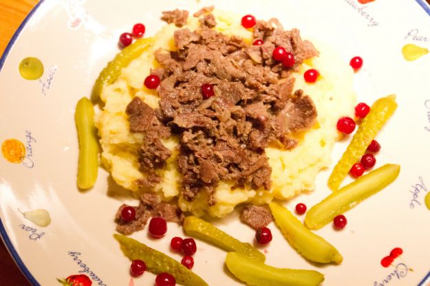 2) Scolate i filetti e disponeteli in una pirofila nella quale avrete messo le mele e le cipolle tagliate a listarelle e cosparse di sale e pepe.